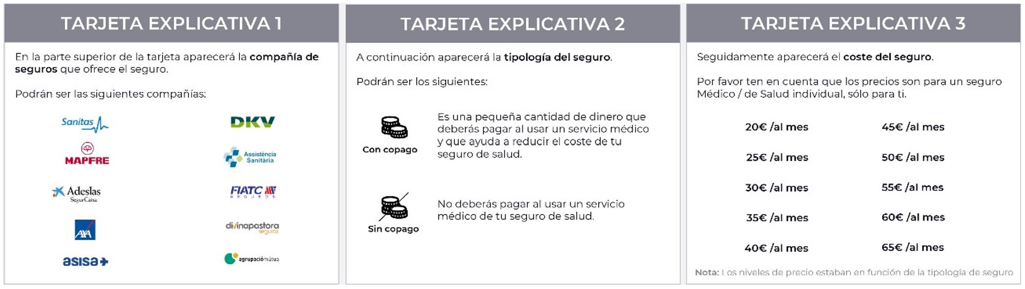 - Diseñar las tarjetas: Si el número de combinaciones planteadas es demasiado alto se utiliza el análisis factorial para reducir el número de perfiles que serán evaluados e incluirlos en el cuestionario. El objetivo es que el “juego” refleje lo más realmente posible un escenario de compra.